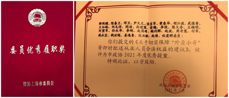 在1月18日举行的上海市政协十三届五次会议预备会议上,对优秀提案和优秀履职委员进行了表彰,其中,市政协常委安琦因履职表现突出被授予“上海市政协委员优秀履职奖”,市政协常委钱世超参与的“关于切实保障‘外卖小哥’等即时配送从业人员合法权益的建议”被评为市政协2021年度优秀提案。