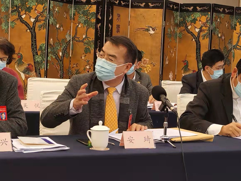 图片说明:钱锋委员参加无党派、科技界分组讨论会议